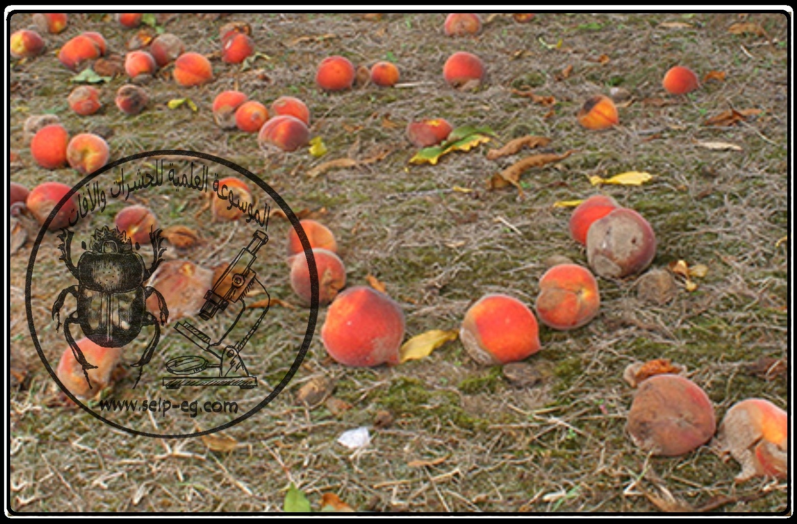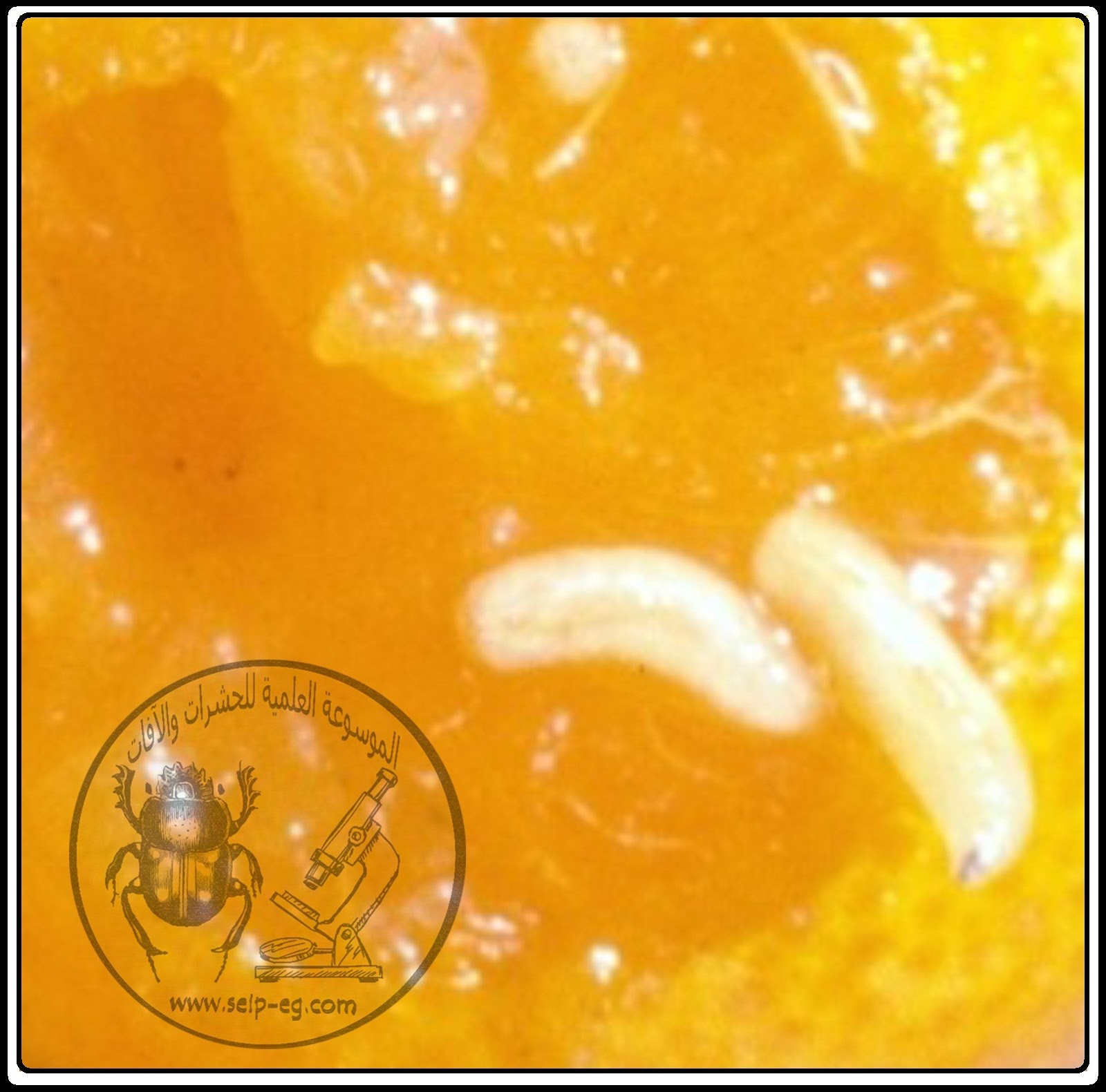 – تضع الأنثى بيضها داخل الثمار وتتغذى اليرقات على أنسجة ثمار الفاكهة.